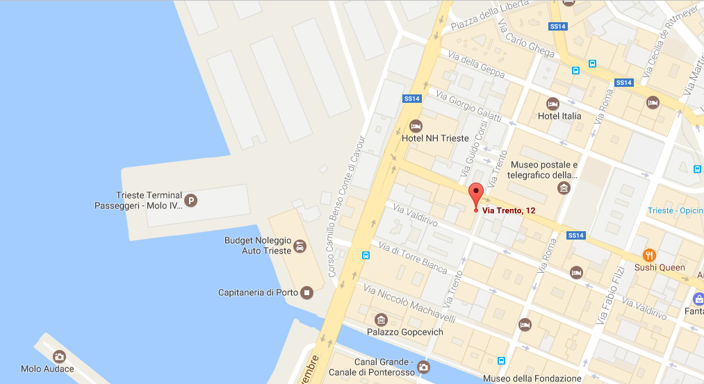 Proseguire in direzione Trieste E 70 e prendere l’uscita Sistiana-Strada Costiera, quindi prendere SS14 per 18km circa. Percorrerete la via panoramica di accesso alla città aperta su mare, un panorama mozzafiato. Vi sono diverse aree di sosta panoramiche per godere di scorci suggestivi.